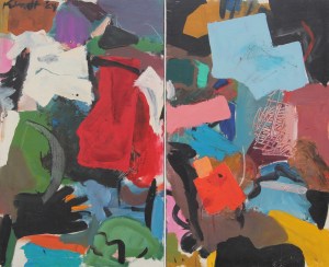 Diptych Abstract: Bear’s Claws Blues; 1964; oil on canvas; two 38 x 23″ panels framed together