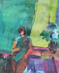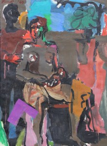 Three Figures in Interior; 1964; oil on linen canvas; 32 x 40″