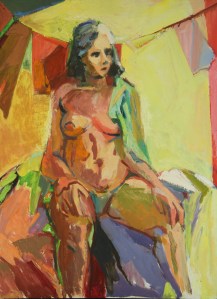 Seated Nude with Clothesline; 1977; oil on canvas board; 30 x 22″